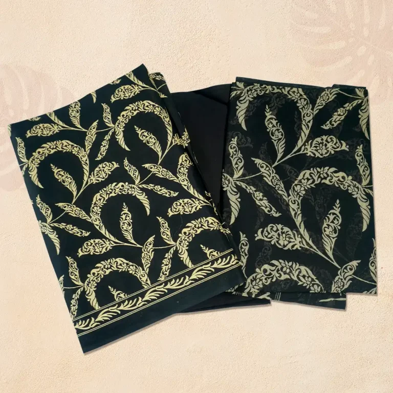 Classic Black & Gold Leaf Hand-Printed Joypuri Three Piece