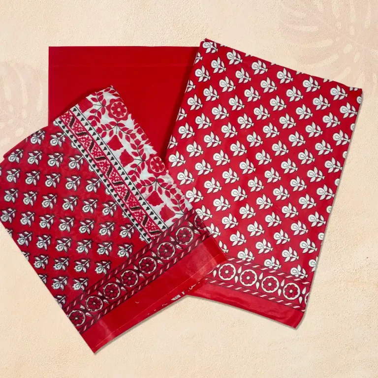 Classic Pure Red Small Print Joypuri Three Piece