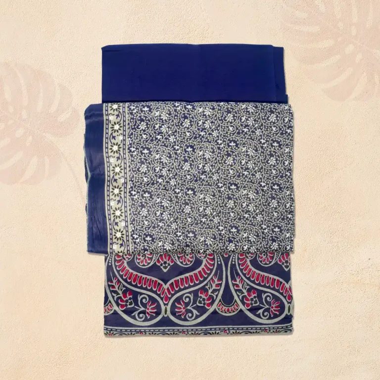 Regal Navy Blue Kolka Design Hand-Printed Joypuri Three Piece