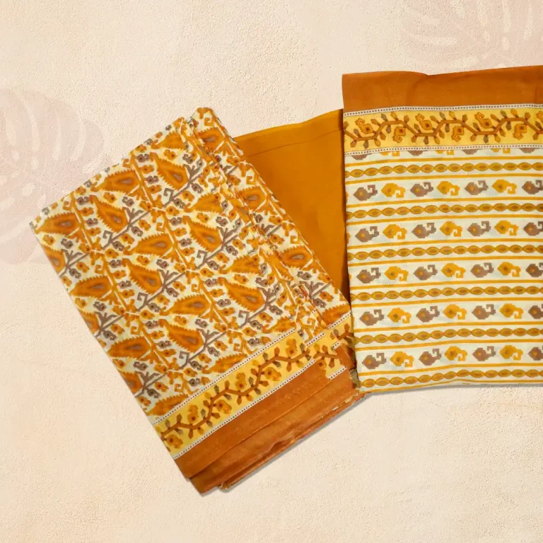 Jamdani Printed Mustard Yellow Joypuri Three Piece