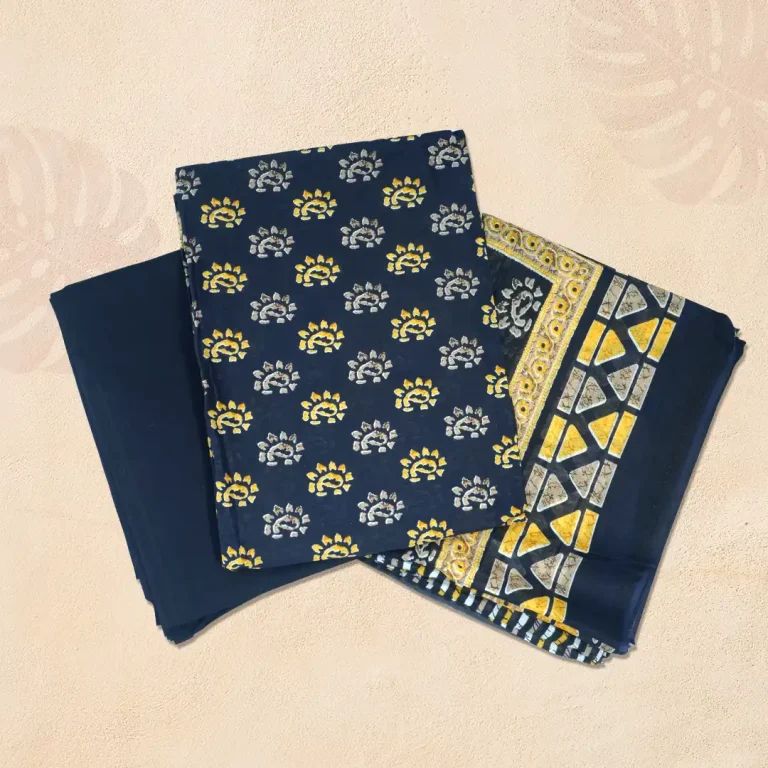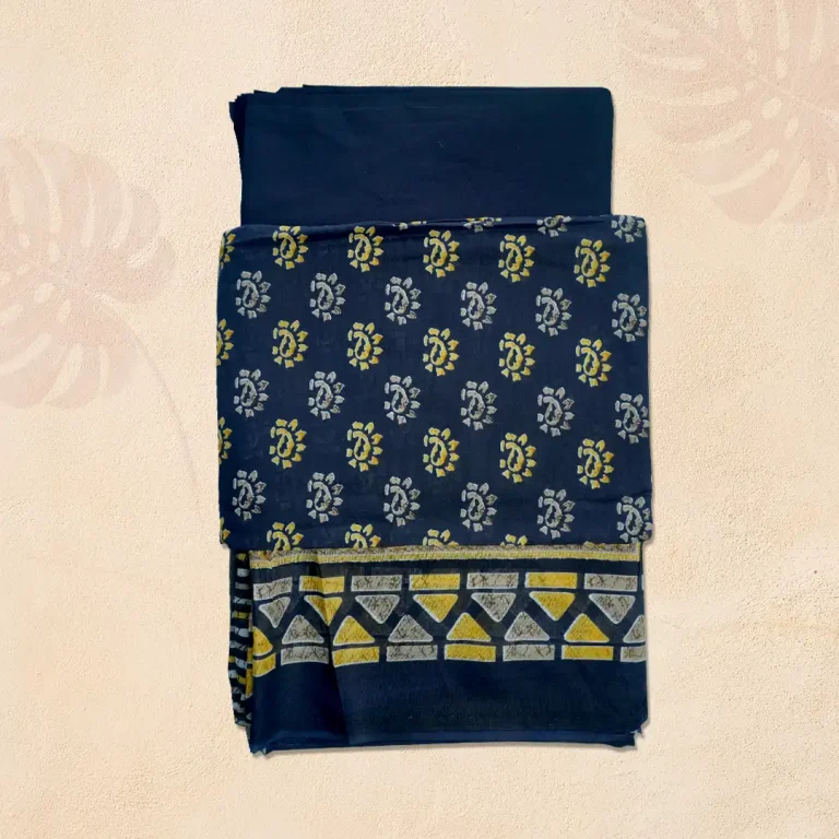 Heritage Navy Blue Floral Motif Hand-Printed Joypuri Three Piece