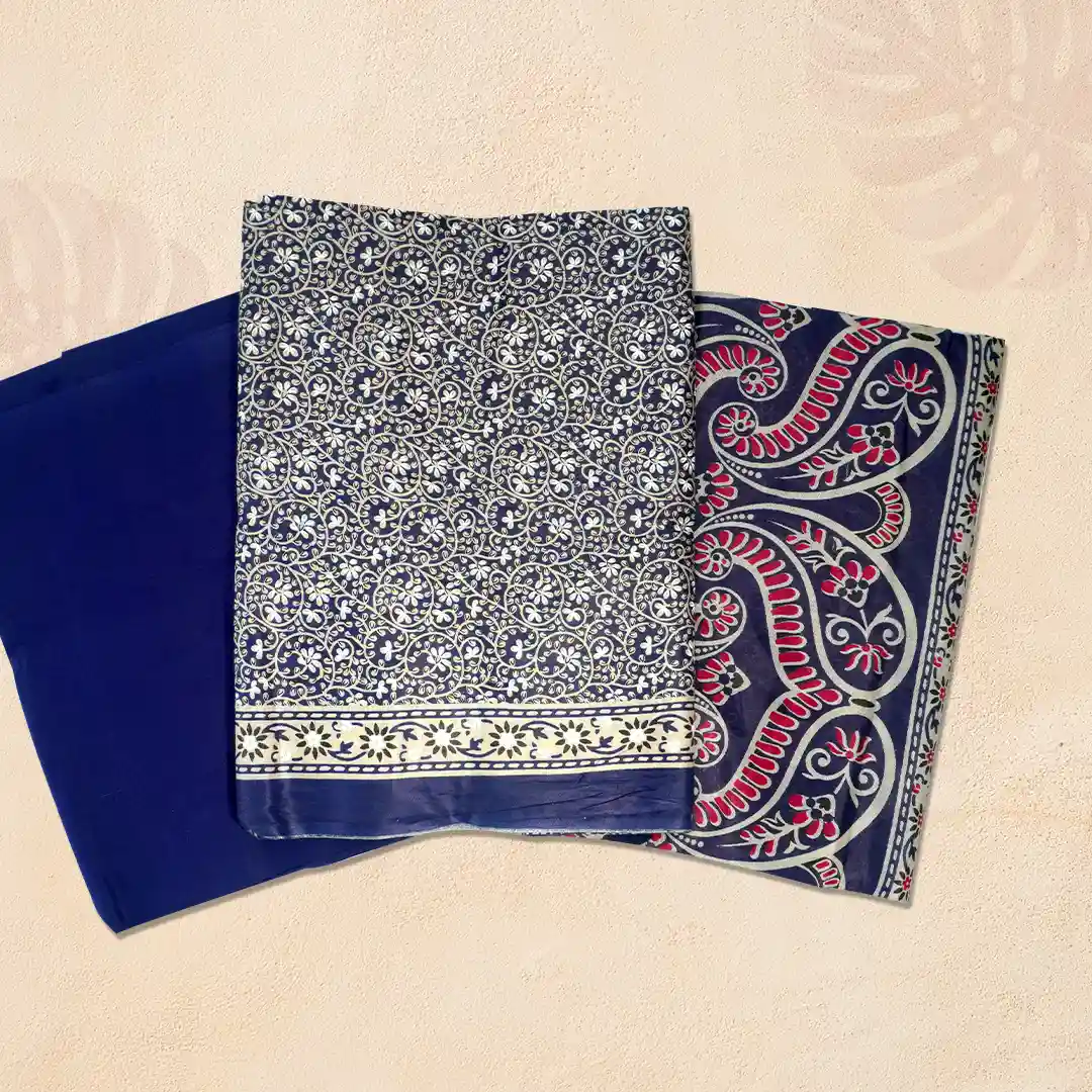 Deep Blue Sober IVY Print Jaipuri Three Piece