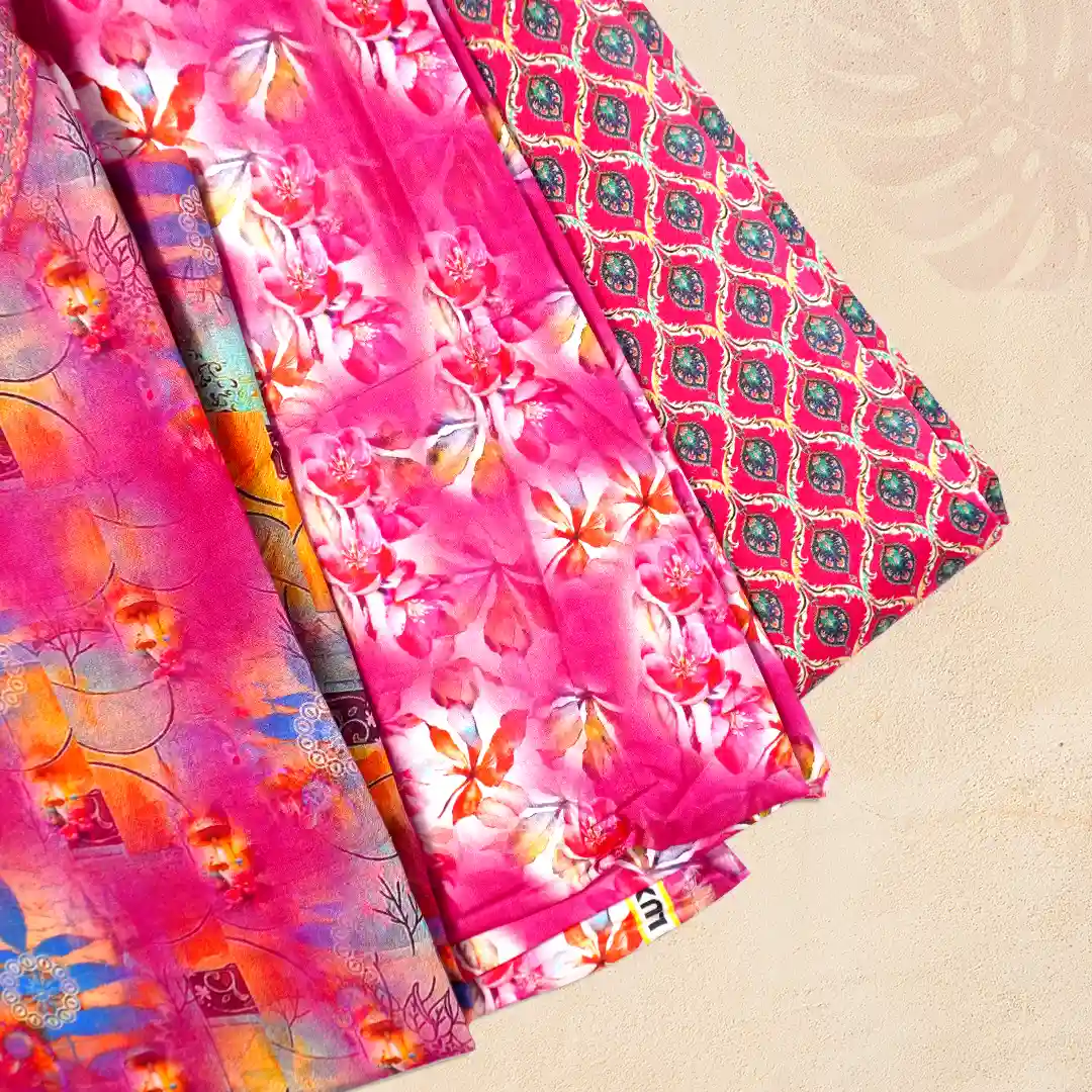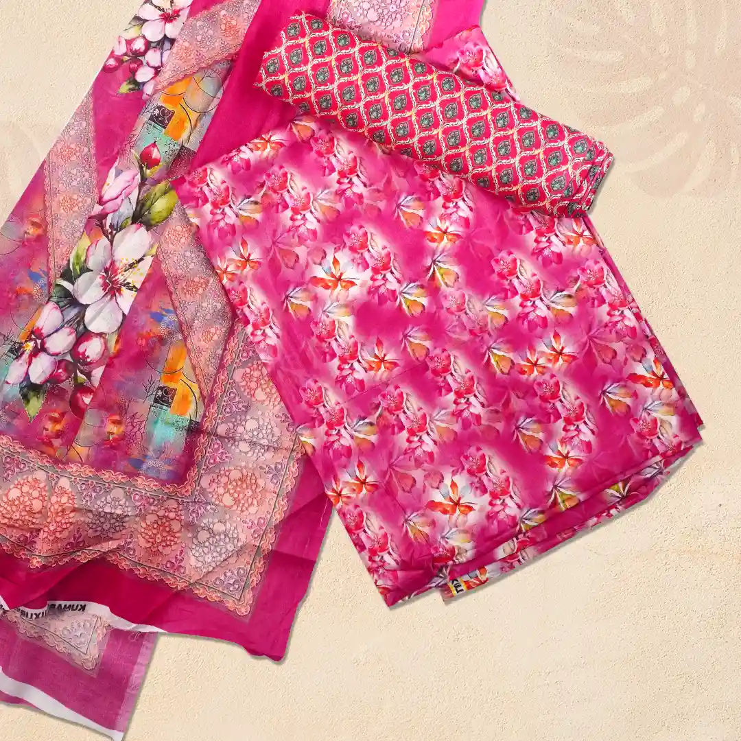 Soft Pink Floral Artwork Digital Lawn Moslin Three Piece